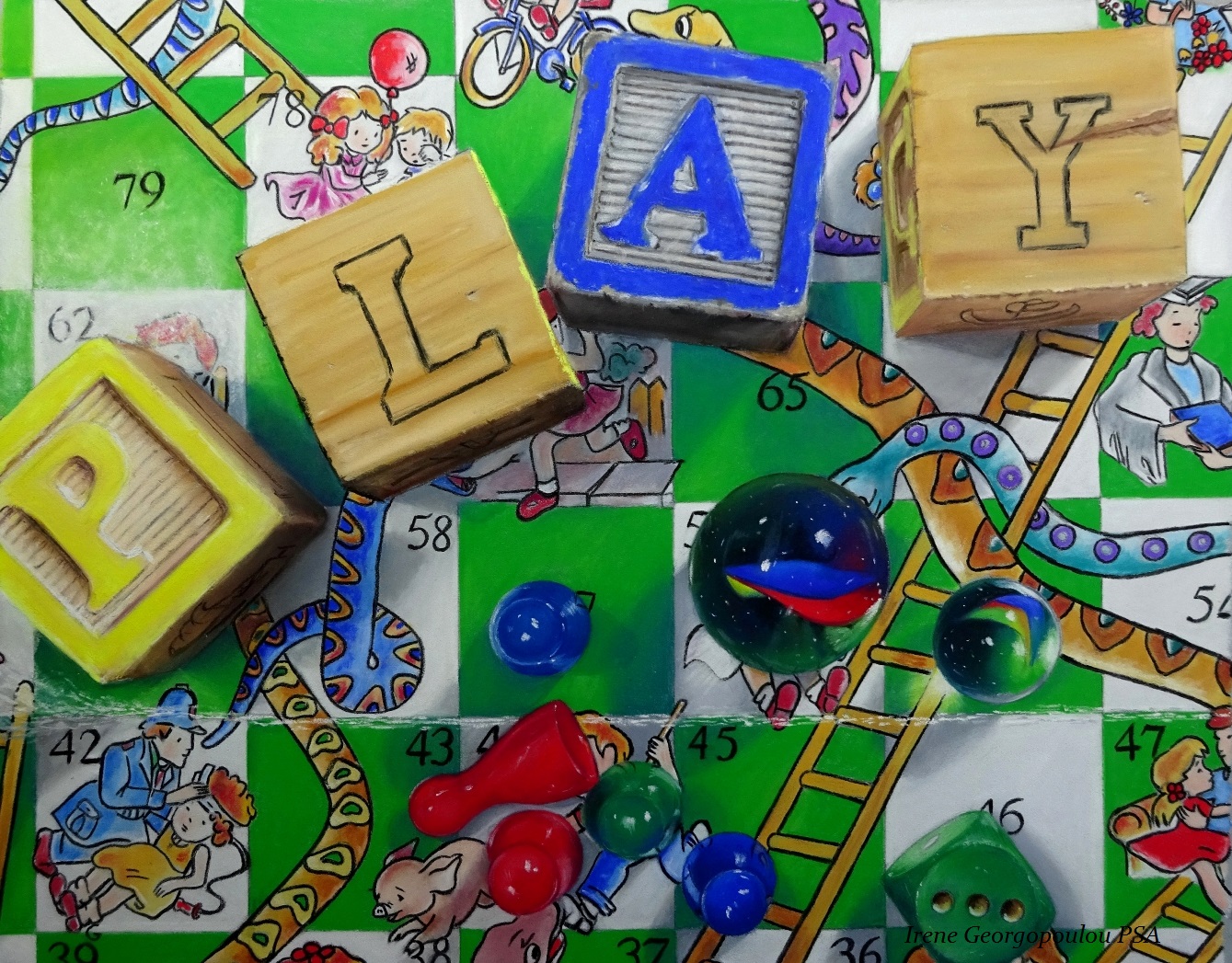 I am happy to share with you that “Cherished Playthings”, “Nostalgic Remnants in the Attic” and “Comic Sphere Symphony” were juried into the Pastel Society of Alaska’s pastel art show ‘Through a Child’s Eyes’.